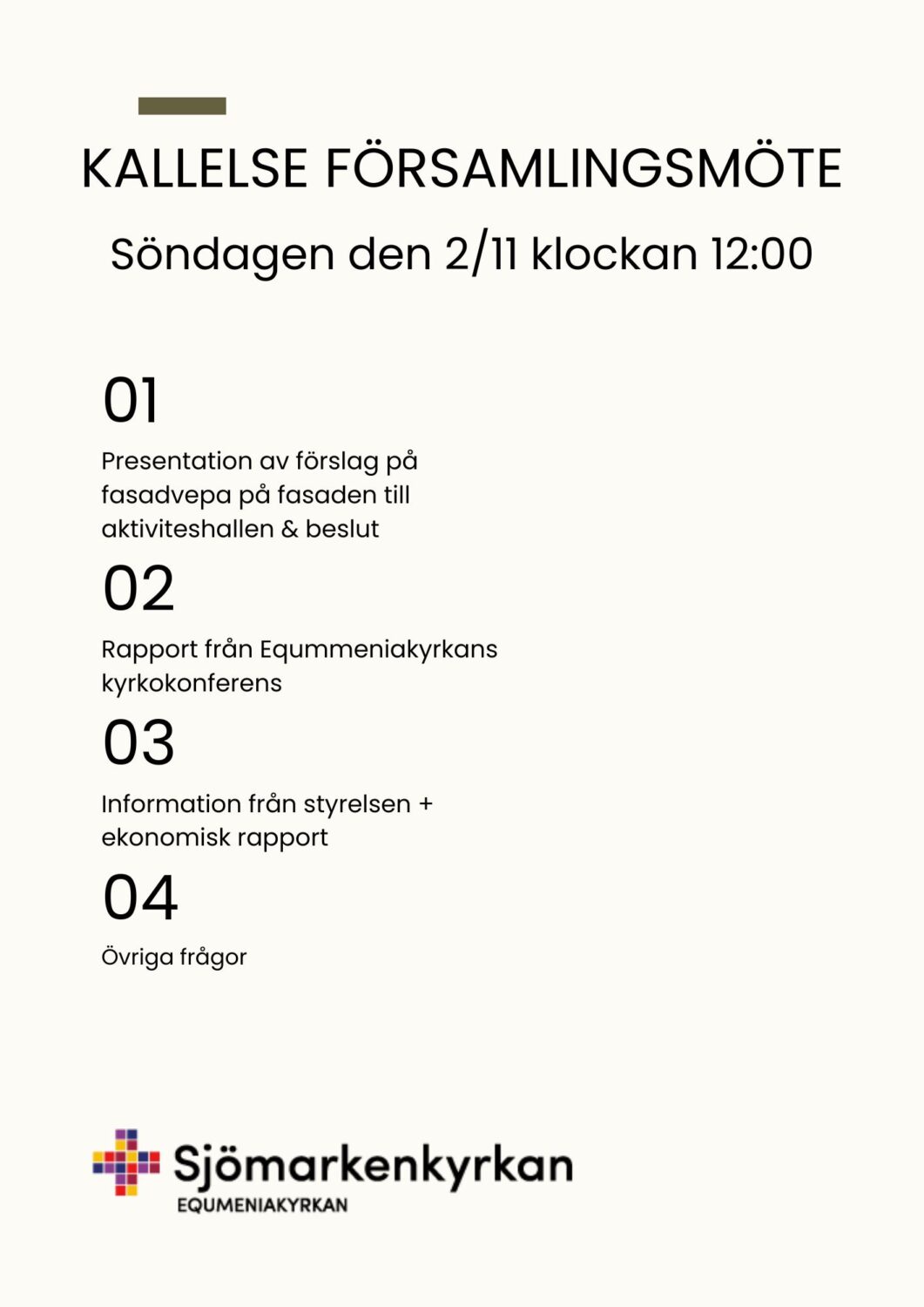 Okategoriserade Kallelse församlingsmöte 2/11-2025 Publicerat 7 oktober, 2025 Kallelse till församlingsmöte 2/11-2025 klockan 12.00 Dela